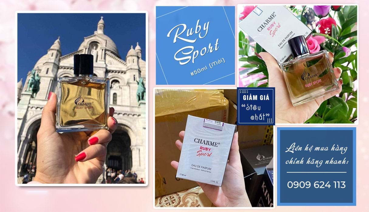 Nước hoa Charme Ruby Sport có mùi hương giống nước hoa Allure Homme Sport của hãng Chanel. Lọ nước hoa này khoảng 2.050.000đ cho chai 50ml.